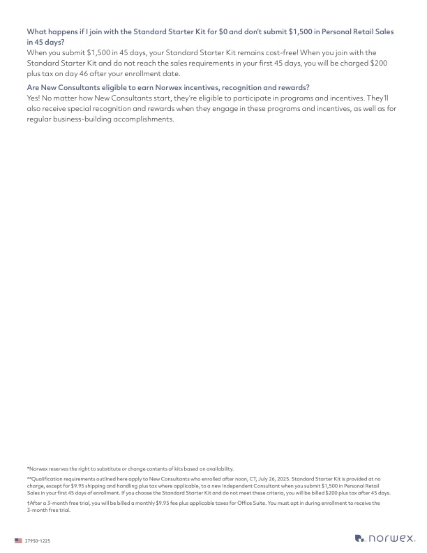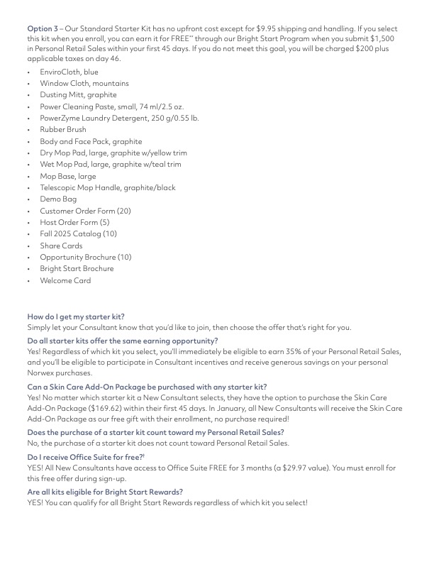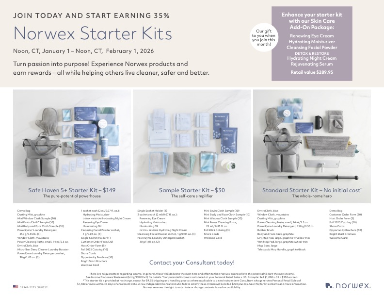 Click here to download the US Norwex Consultant Starter Kit information in PDF format.