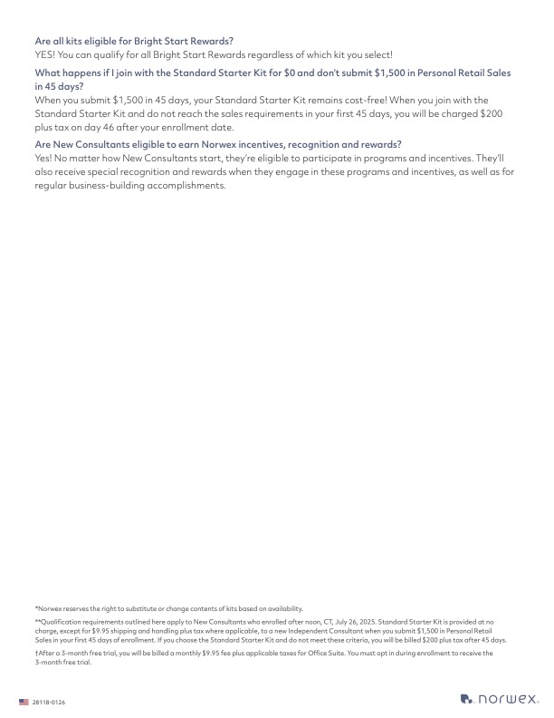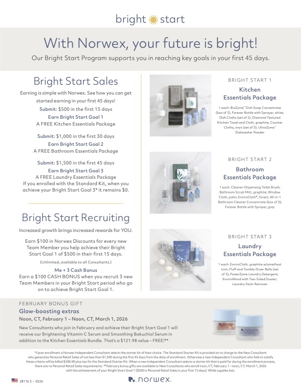 Q. I’ve heard new Norwex consultants can earn bonus rewards in their first 90 days. Can I earn these Bright Start consultant rewards if I choose the Norwex account kit with just an EnviroCloth and Window Cloth?